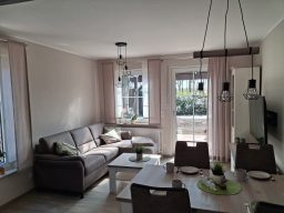 Ein modernes Schlafsofa bietet eine zusätzliche Schlafmöglichkeit. Für Unterhaltung sorgt ein Smart-TV, natürlich mit kostenlosem WLAN im gesamten Wohnbereich. Dank der hellen, freundlichen Gestaltung und der ruhigen Atmosphäre fühlst du dich hier vom ersten Moment an wohl..