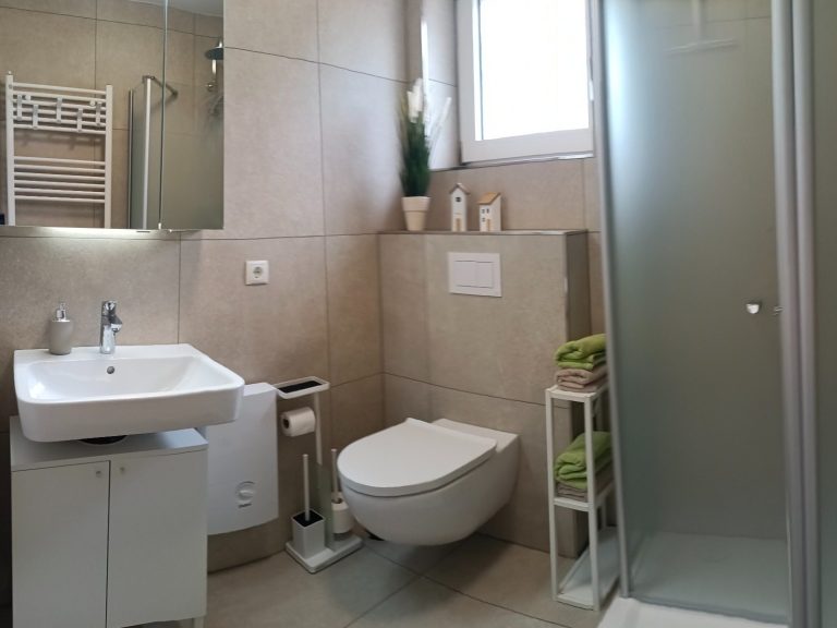 - Modernes, funktionales Badezimmer mit WC und Dusche