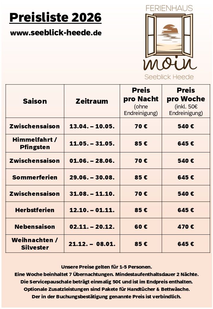 Preise & Inklusivleistungen Ferienhaus moin Seeblick Heede